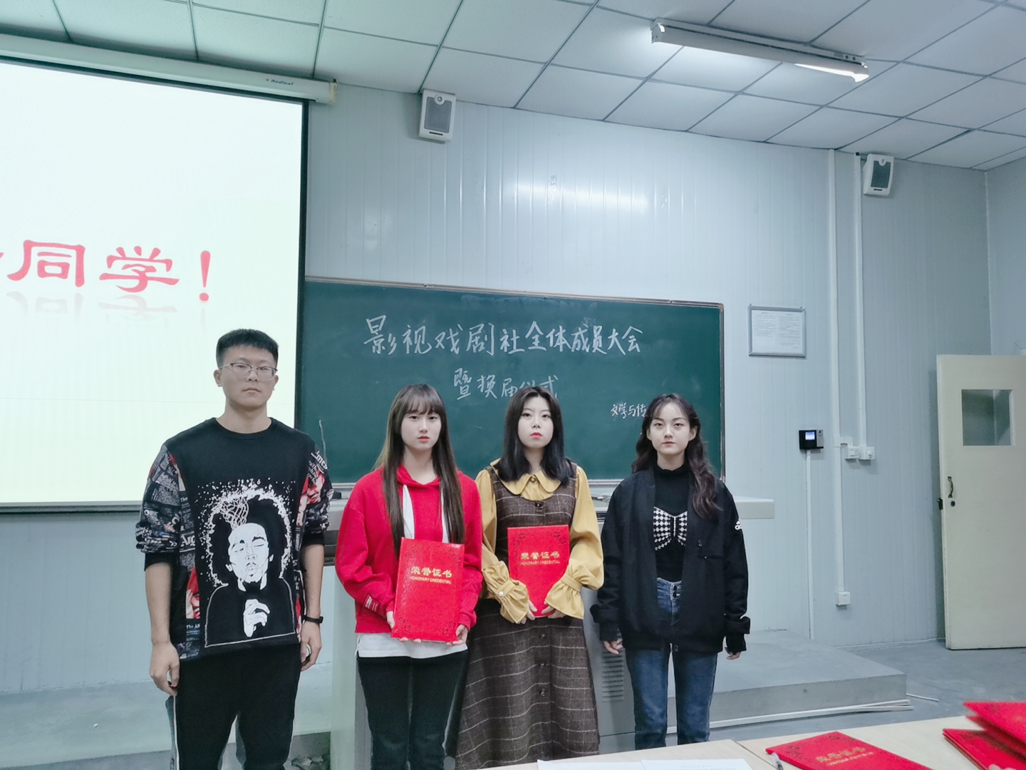 会中,副社长雷孟醒宣读了员工干部任职名单,并由社长和副社长为各部门员工干部颁发聘书,2020级网络与新媒体专业的刘诚代表新社员做了简短发言。之后,全体成员观看了戏剧社近期刚拍摄完成的、“陕西好家风”参赛作品微电影《微信支付》,这也是此微电影的首映,同学们通过这部电影加深了对剧社的印象,也希望此后能参与到微电影的拍摄。