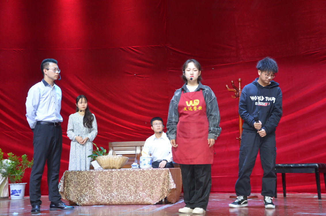 后半场的小品《师徒新传》逼真传神的造型、演员们精彩的表现让人捧腹大笑,同时也告诫同学们别做"低头族";古筝伴舞《琵琶行》舞姿轻灵,像花间飞舞的蝴蝶,赢得阵阵热烈的掌声。