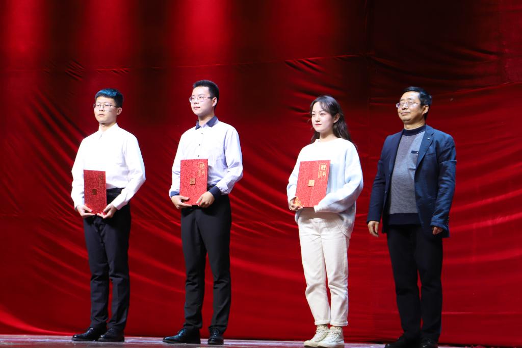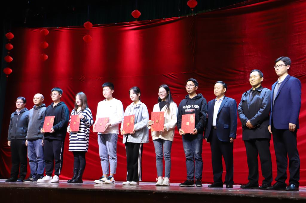 节目中间穿插了激动人心的颁奖环节。伟德betvlctor体育官网为2017-2019年间在影视戏剧社活动中表现突出的陈钊、杨卓研、李洁、张炯、辛南南、乔昕六位同学颁发“校园艺术成就奖”。校保卫处处长王开忠,经理杨运庚,院党总支书记芦伟,保卫处副处长郝礼军,副经理朱云等老师担任颁奖嘉宾为六位获奖同学颁奖。安康市戏剧家协会副主席、影视戏剧社指导教师邹棠华为影视戏剧社新一届社长梁少华,副社长张佳委、胡宇哲颁发聘书,希望同学们再接再厉,再创佳绩!