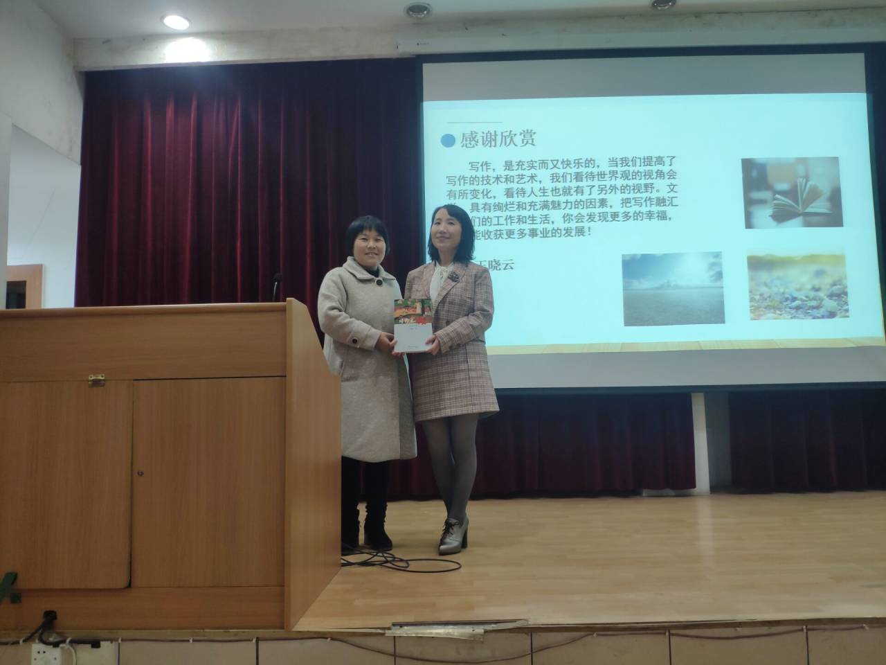 2020年12月8日,晚七点整,著名作家王晓云应伟德betvlctor体育官网邀请,在江南1号教学楼报告厅与基础写作任课教师韩文霞一起,为汉语言文学专业2020级员工讲授“小说创作”一课。同学们对王晓云老师的到来表示热烈的欢迎。汉语言文学系主任李婷到场听课。