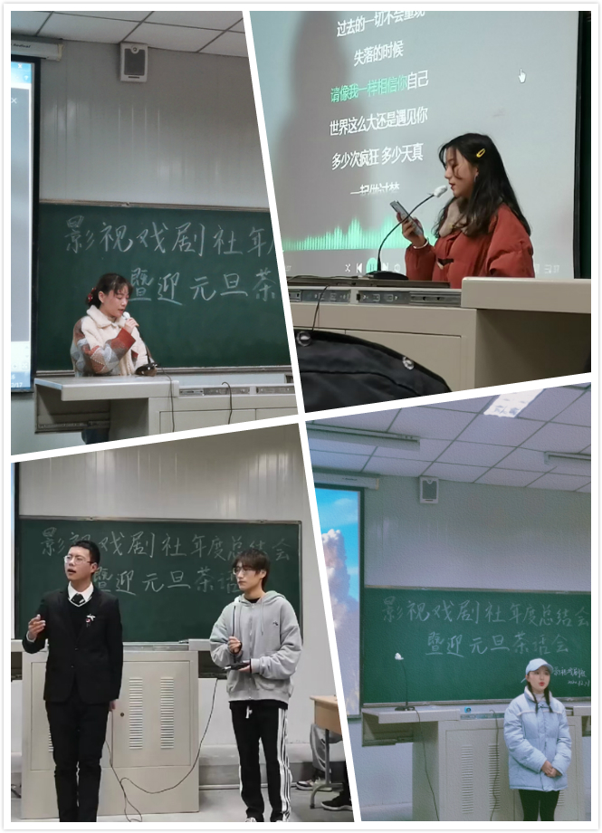 2020年12月17日下午4时,伟德betvlctor体育官网影视戏剧社在1025教室成功举办了2020年度戏剧社总结大会暨迎元旦茶话会。影视戏剧社特邀公司党总支书记芦伟、党总支副书记杨海蓉、综合办主任崔瑜、学工办主任薛涛出席此次活动,影视戏剧社指导教师邹棠华及全体社员共同参与,活动由影视戏剧社成员杨钰主持。