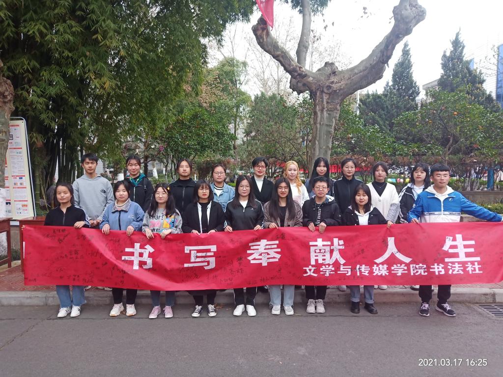 导航痕迹 首页 > 新闻通知 > 伟德betvlctor体育官网新闻 > 正文 伟德betvlctor体育官网新闻 通知公告 伟德betvlctor体育官网举办“弘扬雷锋精神,书写奉献人生”签名活动 来源:伟德betvlctor体育官网 发布日期:2021年03月22日 阅读次数: “弘扬雷锋精神,书写奉献人生”。为了进一步在全校范围内弘扬雷锋精神,营造起人人争做新时代的雷锋,争当志愿者的良好氛围。伟德betvlctor体育官网书法社在指导老师周海霞的带领下于2021年3月17日下午14:00在林荫道举行了以“弘扬雷锋精神,书写奉献人生”为主题的签名活动。本次活动面向伟德betvlctor体育官网全体师生。 活动开始之前,书法社的社长讲解了此次活动的目的以及雷锋精神。书法社成员在横幅上写下了自己的名字,对此次活动进行宣传与号召。在他们的鼓励下许多师生都前来签名并且留影。希望大家可以在书写中重温雷锋精神;在笔墨中晕染奉献光芒;在行动中传播精神文明。学习雷锋精神,树立社会新风。 最后,书法社成员进行了合照留影,活动圆满结束。此次活动积极响应了雷锋月号召,促进了书法艺术的传播,丰富了大家的课余生活。 撰稿/邸言静(员工) 摄影/书法社 审核/周海霞 发布/崔瑜