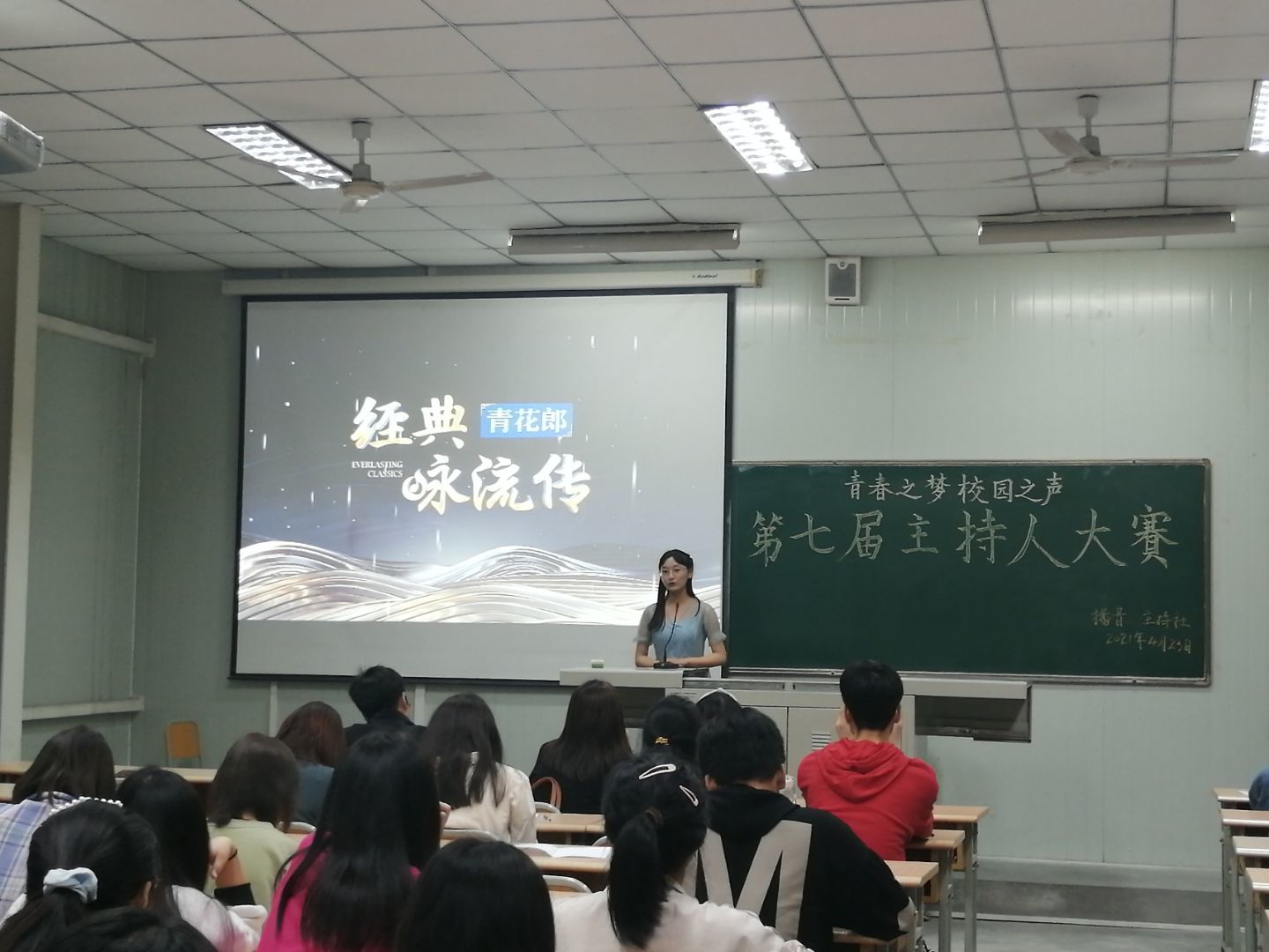 4月23日晚,由伟德betvlctor体育官网播音主持社举办的“青春之梦,校园之声”第七届主持人大赛决赛在江南校区1024教室如期举行。出席本次大赛的评委有伟德betvlctor体育官网邸玲老师、崔瑜老师和社团指导老师黄治强老师。播音主持社全体社员、参赛选手的亲友团以及兴趣观众观看了本次比赛。
