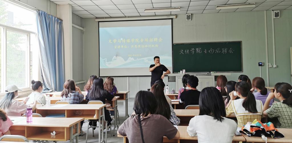 为切实做好毕业生就业工作,构建毕业生与用人单位的交流平台,提高公司毕业生就业率,6月2日下午16:00,伟德betvlctor体育官网邀请洪恩英语培训机构来公司举办2021届毕业生校园专场招聘会,伟德betvlctor体育官网毕业生辅导员彭潇及在校的40余名毕业生参加了此次招聘会。