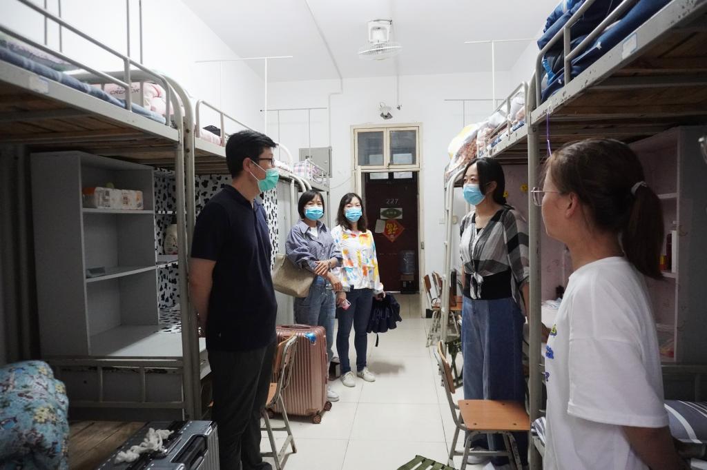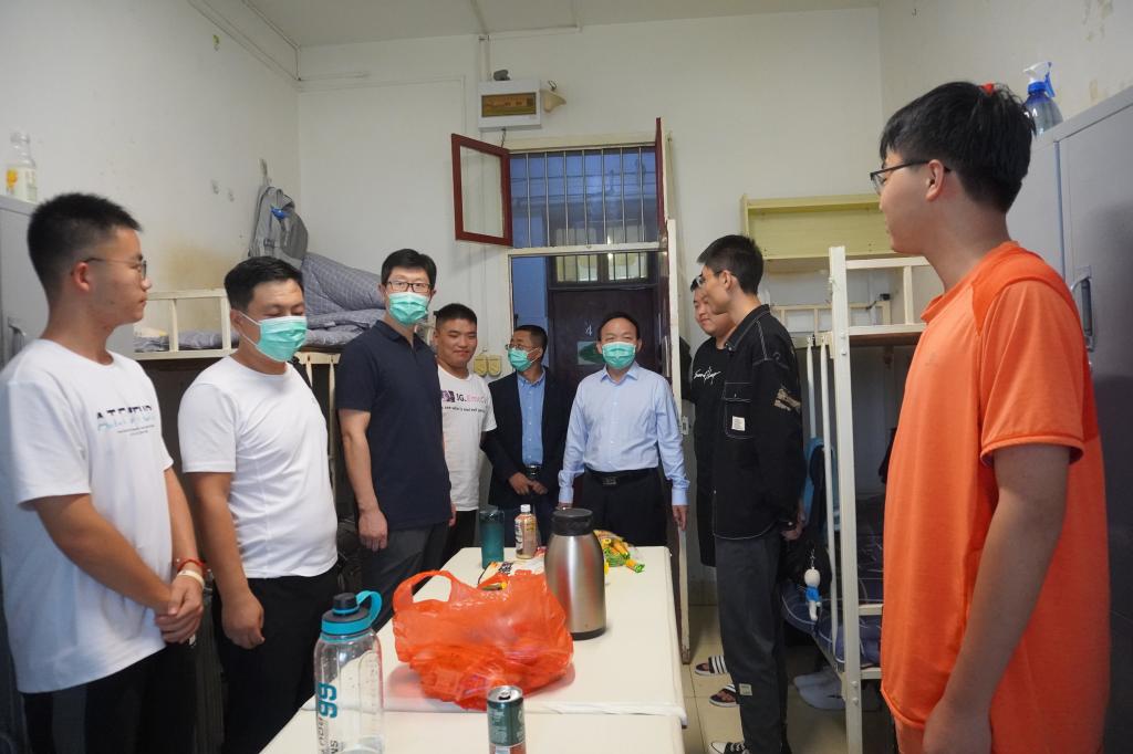 2021年8月28日17:00,大雨如注,伟德betvlctor体育官网经理杨运庚、党总支书记芦伟、副经理李婷带领辅导员和综合办公室主任前往新生宿舍,看望2021级已报到入住的新同学。