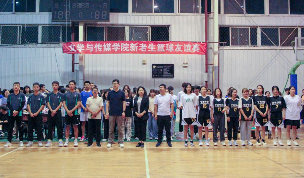 为积极响应习近平总书记提出的体育强国战略号召,营造“全民全运”大健康氛围,丰富员工第二课堂建设,助力员工全面发展。9月17日晚19:30,伟德betvlctor体育官网在江南校区体育馆二楼举行“迎国庆·庆中秋——伟德betvlctor体育官网新老生篮球友谊赛”,由公司大二、大三、大四年级组成的老生代表队和2021级新生代表队参加了此次活动。党总支书记芦伟、党总支副书记杨海蓉、学工办副主任薛涛、2021级新生辅导员邹棠华及2021级全体新生到场观赛。此次友谊赛由网络与新媒体2020级1班胡文婷主持。