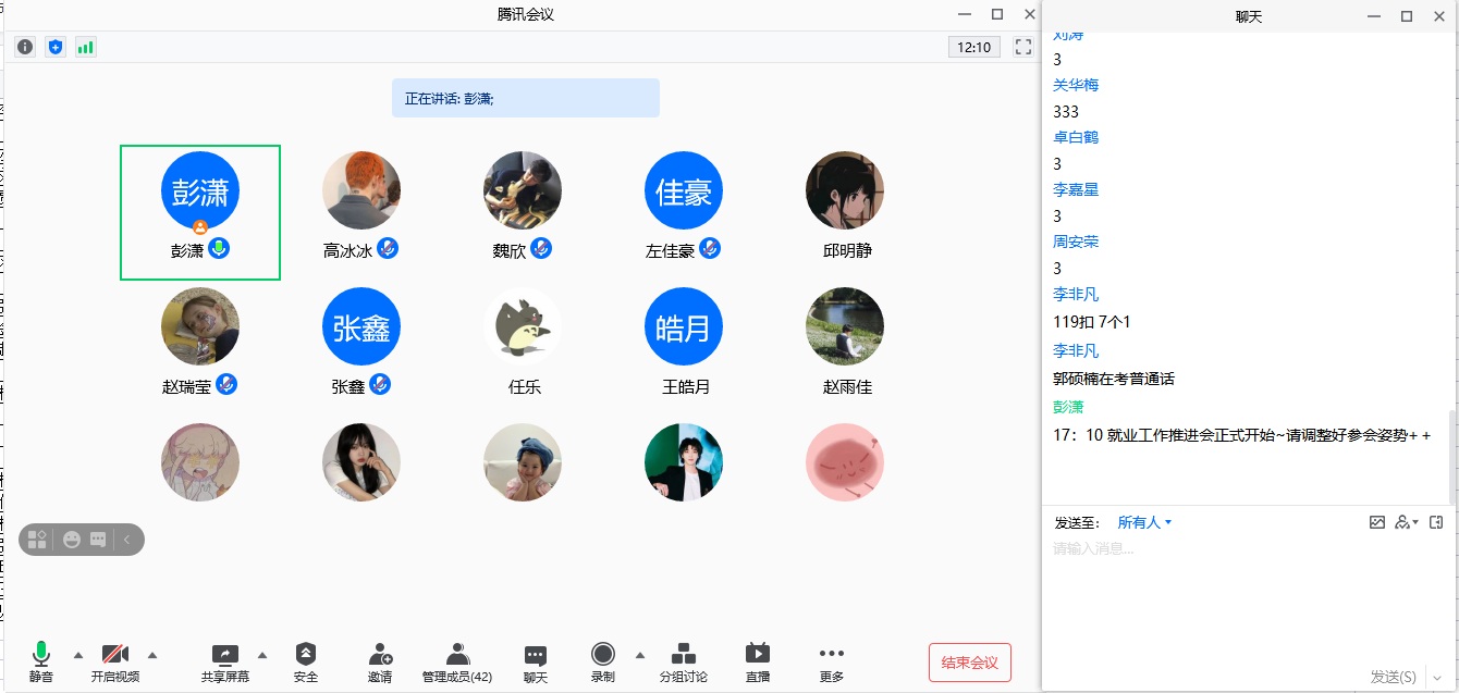 会议开始,彭潇带着员工回顾了在校的近4年时光,从时间的紧迫性入手,强调了学业规划、就业规划的重要性。她依据毕业生就业意向调研结果,对拥有不同就业目标的员工群体进行了针对性的教育引导和答疑,重点解释了同学们普遍关心的“应届生资格”“三方协议”“正式录用”“24365智慧就业平台”“云就业系统”等问题,并对同学们实习、就业的积极性和主动性给予了表扬,表达了对同学们就业、考研等方面的期许。