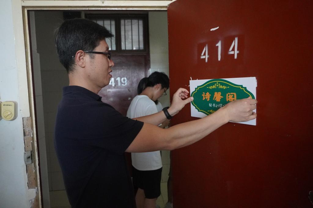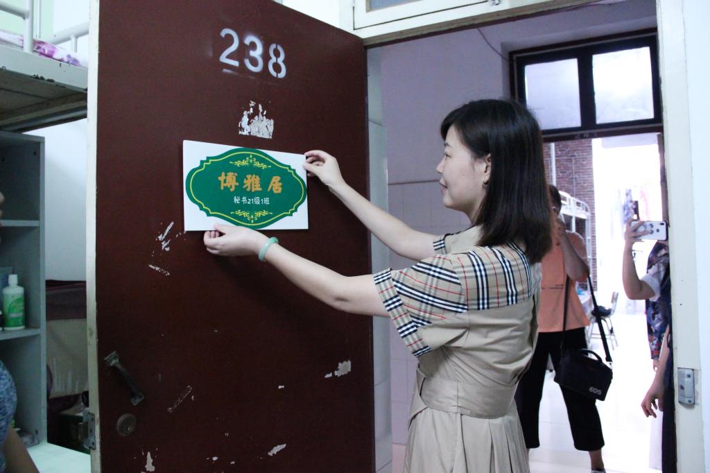 芦伟宣布伟德betvlctor体育官网第三届宿舍风采大赛正式启动。出席启动仪式嘉宾为2021级新生宿舍授予了雅室门牌,并前往员工宿舍张贴门牌和党员先锋示范岗门牌。