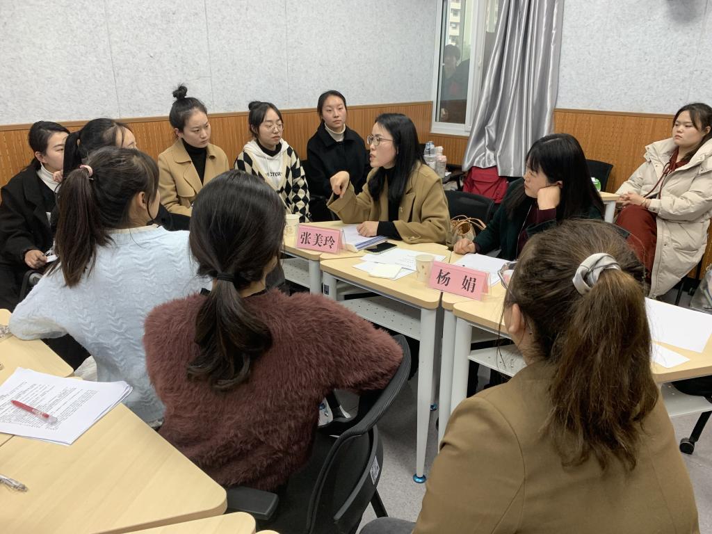 本次选拔赛根据省赛规定,一共设置了六个环节的比赛内容,分别是教学设计、粉笔字书写、即席演讲、说课、模拟授课和问答环节。十名选手根据抽签顺序依次上台进行展示。赛后,指导教师张格瑄邀请本次比赛语文组专家评委老师对同学们的表现进行了点评。张美玲老师从微课教学内容的选择、诗歌朗读法的重要性等层面进行了点拨指导,杨娟老师从课堂提问问题的设置角度进行了详细说明,同学们深感受益匪浅。