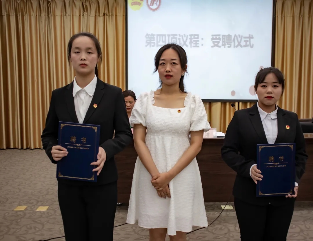 彭潇、杨海蓉分别为新一届团总支副书记苏圆、胡钰梽、新一届员工分会主席团成员范璐、康怡帆、王珂欣颁发了聘书。