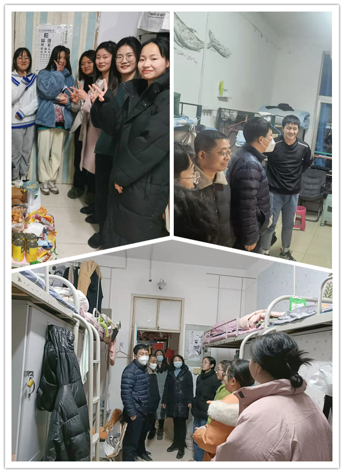 在新年来临之际,老师们深入宿舍,首先为同学们送上诚挚的祝福与真切的鼓励,与同学们亲切交流,仔细询问了近期疫情防控管理下的学习生活状况、期末复习备考情况,叮嘱同学们要注意防寒保暖,做好疫情防护措施,遵守公司“非必要不出校”的要求。鼓励同学们保持良好心态,努力克服学习和生活中的困难,劳逸结合、加强锻炼,增强战胜疫情的信心。希望大家认真复习备考,期末取得好成绩。同学们在跨年夜和元旦日的寒冬中,感受到来自公司的深切关怀和文传院大家庭的温暖,更加积极应对考试,做好新年的学习规划。