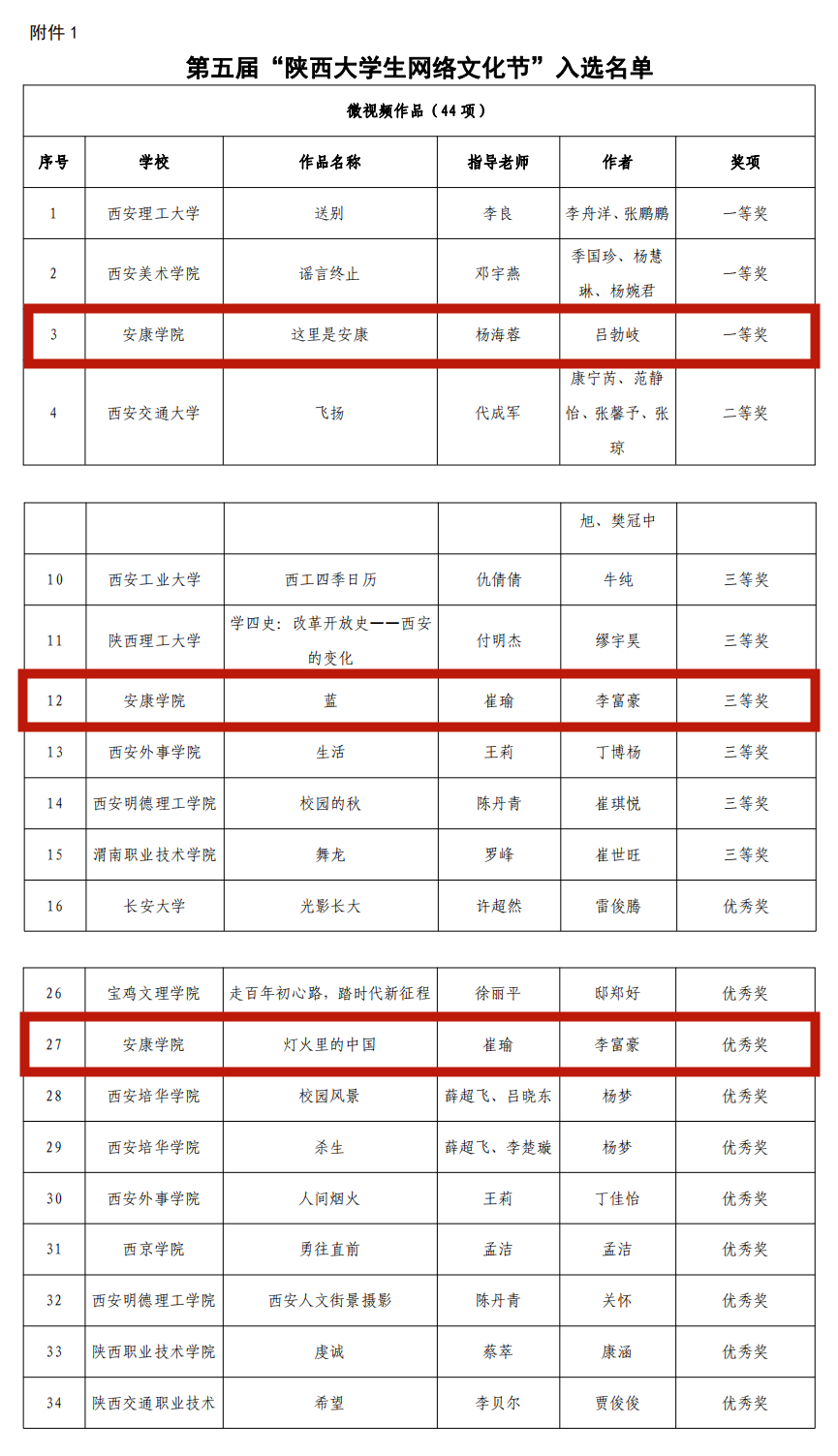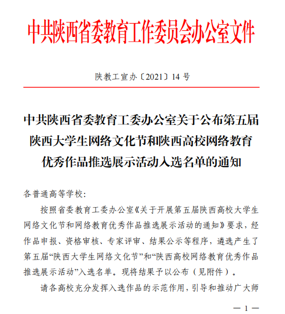 日前,由陕西省委教育工委办公室组织的第五届“陕西老员工网络文化节”评选结果落幕,经作品申报、资格审核、专家评审、结果公示等程序,遴选产生了第五届“陕西老员工网络文化节”和“陕西高校网络教育优秀作品推选展示活动”入选名单。伟德betvlctor体育官网网络与新媒体专业2017级员工吕勃岐微视频《这里是安康》荣获微视频类一等奖,李富豪摄影作品《蓝》、《灯火里的中国》分别获摄影作品类三等奖和优秀奖。